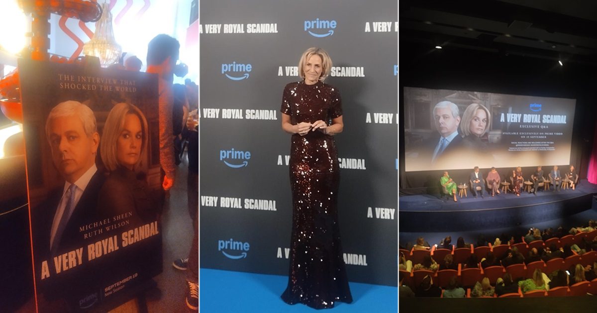 A blue ‘red’ carpet had been laid on for the press to snap assorted luminaries implicated in A Very Royal Scandal (available to stream from 19 September) as they posed for the cameras. The glittering centrepiece beaming beneath those flashlights though was Emily Maitlis, whose career-defining 2019 Newsnight grilling of Prince Andrew is dramatised in the three-part Prime Video series.