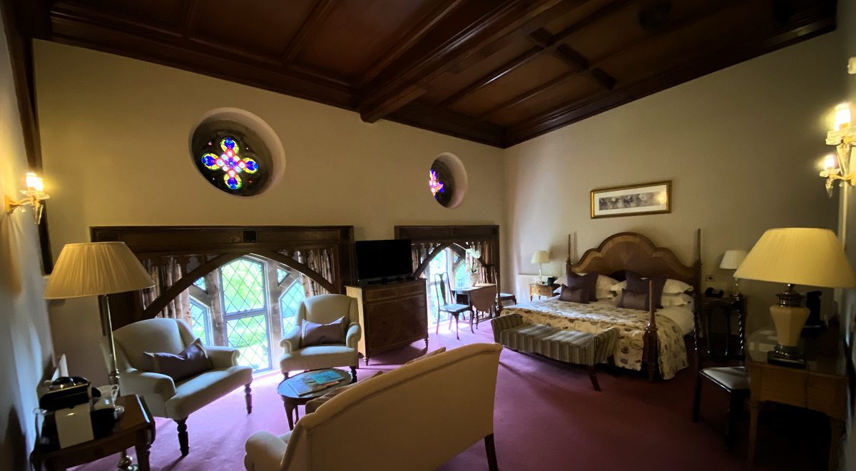 And what an upgrade. Two fabulous suites in the East Wing, if you don’t mind. Take a look at mine! It’s literally a gothic dream. And yes, that is the bathroom window. Whilst showering, I felt like Jake Blues as the light hit me through the glass. I could almost hear James Brown shouting, “do you see the light?!” Reader, I saw the light.