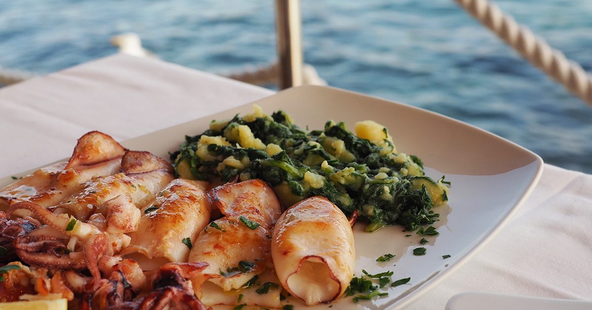 Buzara-style mussels, gently steamed with white wine, garlic and herbs — began as a fisherman’s meal, cooked quickly with whatever was to hand. Today, they remain one of the purest expressions of coastal Istrian cooking: simple, briny and best eaten slowly. In Rovinj, where Venetian architecture meets the Adriatic, Restaurant Puntulina serves seafood just metres above the water, letting freshness and setting elevate the dish rather than heavy technique. Restaurant Puntulina sits directly above the sea holding a wonderful view. Seafood dishes start from €50 onwards.