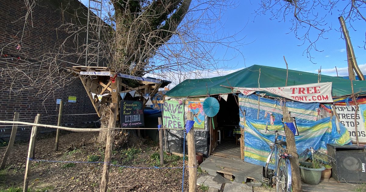 Campaigner Solstice occupying the tree site in Shoreham. Photo: Sam Harrington-Lowe