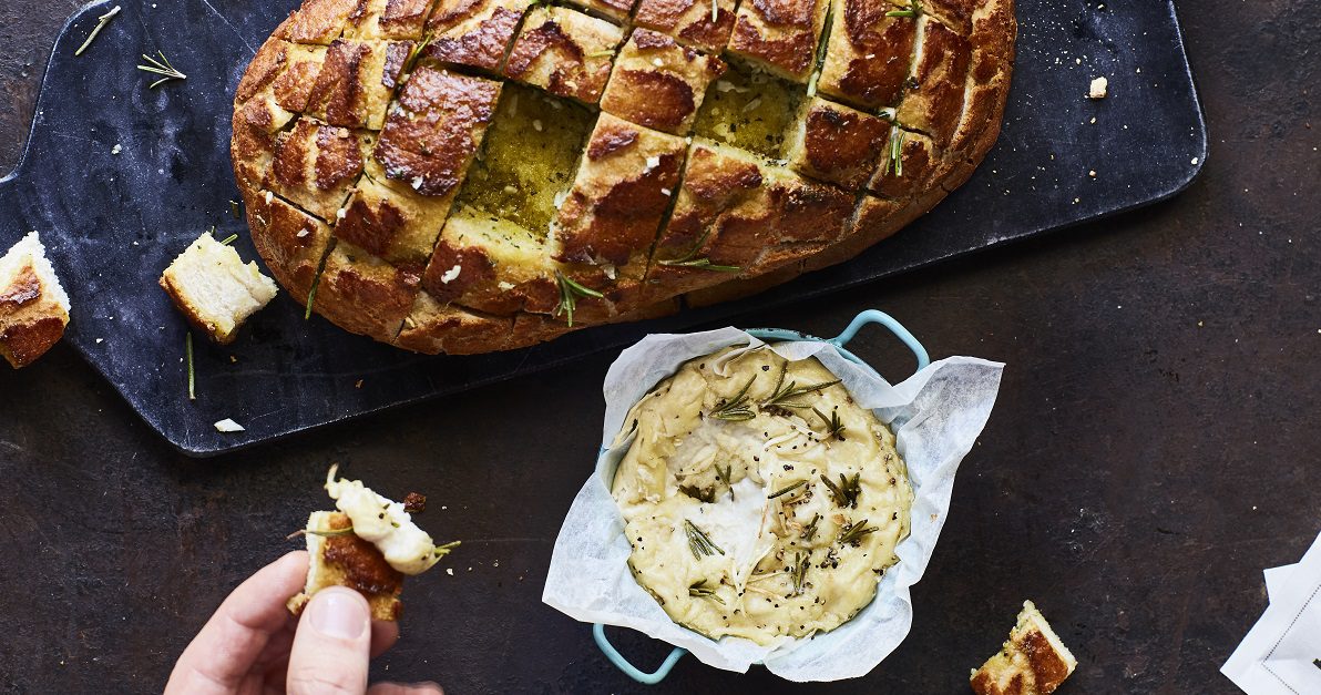 Prepare the loaf | Use a bread knife to cut even slices across the top of the loaf, 3cm apart, making sure you don’t cut all the way through as the base needs to remain intact | Turn the loaf 90 degrees and cut across the first slices to make a criss-cross pattern