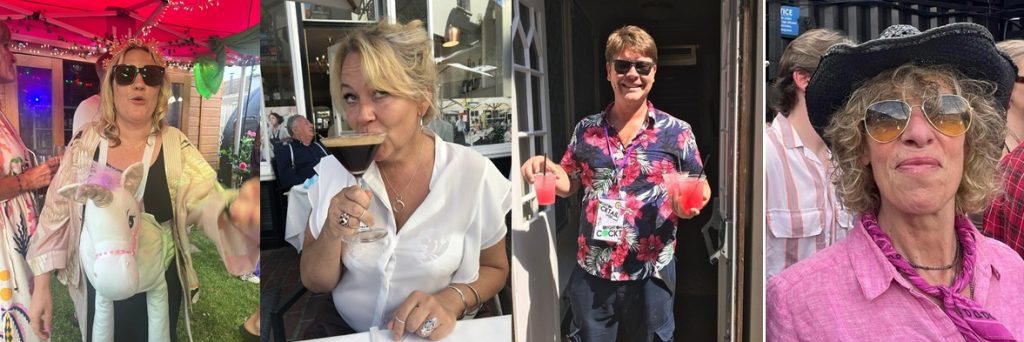 Would you buy a second-hand car off this lot? L-R this is Zoe Cunliffe, one half of the legendary Mixology Group, arguably the most functional half, as she deals with the outside world and chases down the business like a puma going full pelt. She also loves wine. Next comes yours truly, who knows a lot about everything, natch, including wine. Then you’ve got Myles Cunliffe, the second half of the Mixology Group, and definitely the one with the real viticultural knowledge. And finally Adrienne Palmer, who not only has a sterling background in dedicated wine drinking, she’s also an experienced licensee who now also works at the glorious Bolney vineyard.
